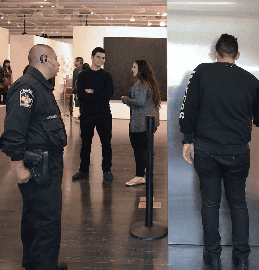 Image: Sergio Bromberg, Checkpoint with stainless steel, 2012. Stainless steel, electrical cords, retina scanner. MexiCali Biennial 2013: Cannibalism in the New World at Vincent Price Art Museum.