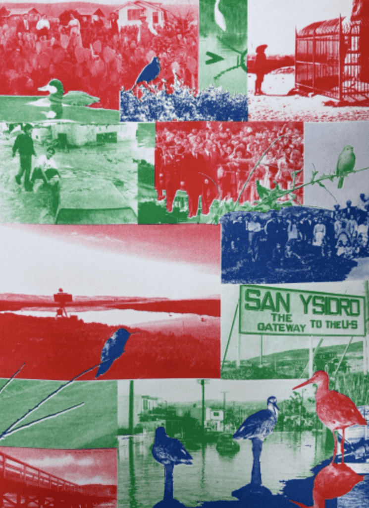 Image: Cynthia Hooper, The Wetlands of Lithium Valley installation detail of mural at the Steppling Gallery (MexiCali Biennial), San Diego State University Imperial Valley Campus, Calexico, CA, 2023.