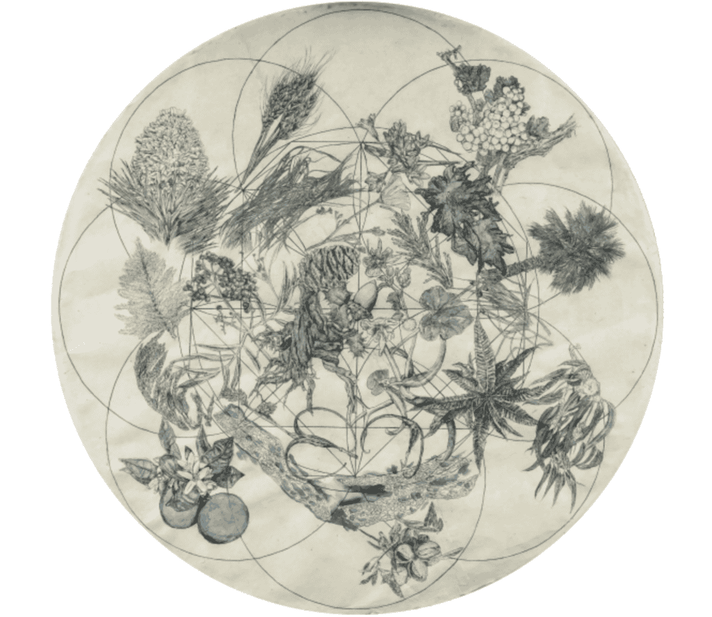 Image: Miyo Stevens-Gandara, Dismal Cycle: California Flora (2016), drawing on Japanese paper