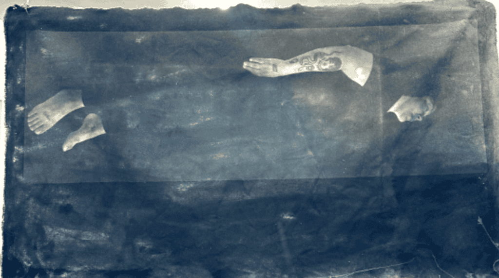 Image: Amina Cruz, Sueños, 2025. Cyanotype, tea, and coffee on canvas